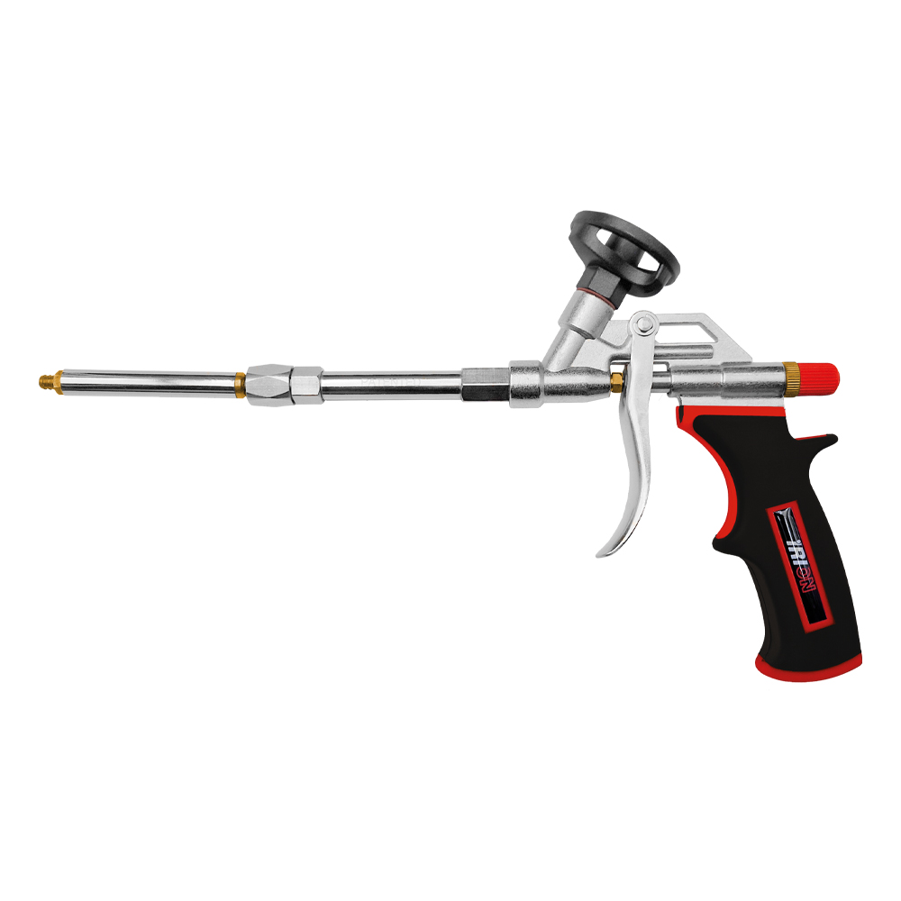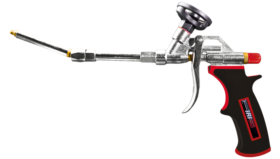 – WORLD INNOVATION foam gun – Flexible tube with joint for bending – Great for hard-to-reach places – Precise adjusting with endstop function – Rubber coated handle